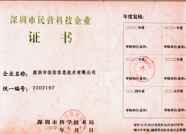 证书说明:深圳市民营科技企业证书