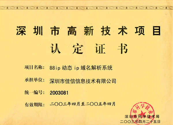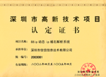 证书说明:深圳市高新技术项目认定证书