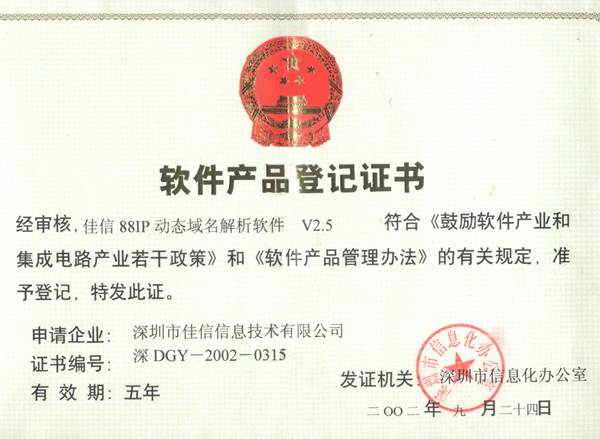 证书说明:软件产品登记证书