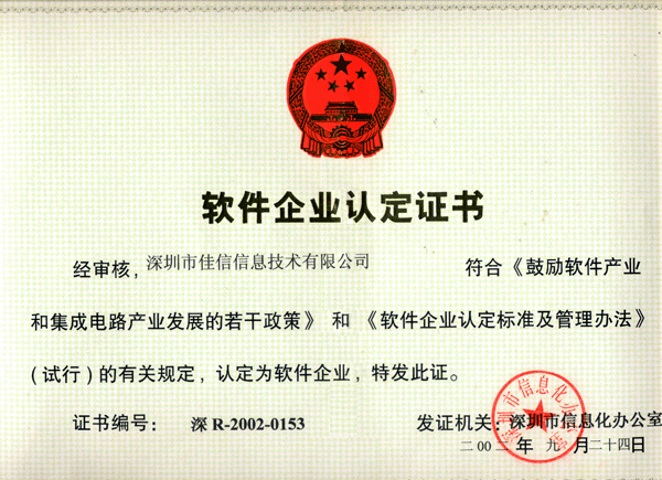 证书说明:软件企业认定证书