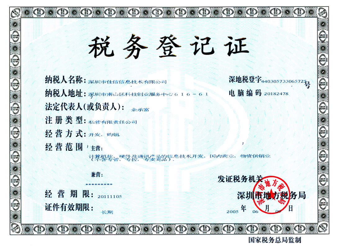 颁发单位:深圳市地方税务局