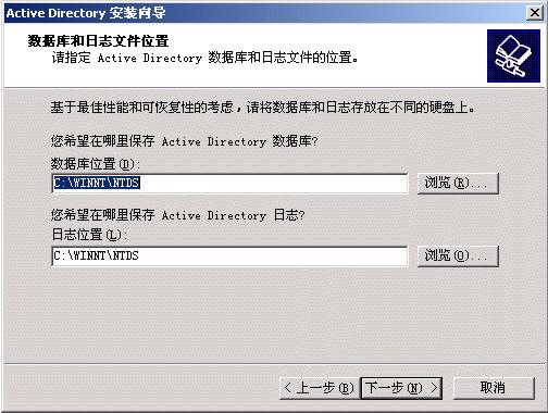 为了性能和可恢复性的考虑,我们可以将数据库和日志分别保存在不同的硬盘分区上。修改盘符并点击“下一步”,将显示: