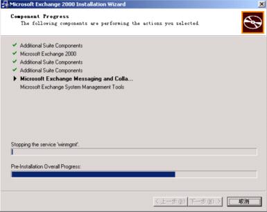 由于Exchange 2000 Server的安装过程很长(往往需要1~2个小时左右,视服务器配置而定),为了防止安装过程中因意外事故(比如停电)的发生而造成前功尽弃,请事先做好相关防范工作。