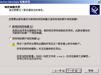 选中“创建新的域目录树(R)”并点击“下一步”: