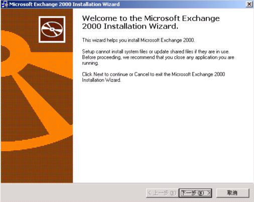 安装过程将首先显示Exchange 2000 Server安装向导(Install Wizard)的欢迎页面。