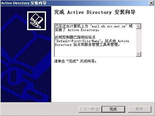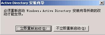 完成Active Directory的配置,提示重新启动Win2000。系统启动后用Administrator登陆到上面设置的域。