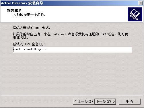 指定文件夹到某个NTFS格式的硬盘分区上,并点击“下一步”,如果向导无法与处理名称“mail.liroot.88ip.cn”的DNS服务器取得联系,则将显示下面的消息: