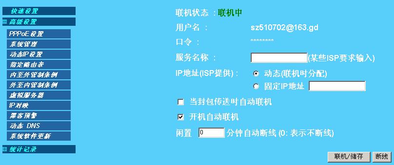 首先在IE里面输入192.168.0.1登陆到路由器,输入用户名和密码进去之后找到"高级设置“里面的”虚拟服务器“选项,如下图: