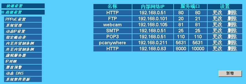 打开”虚拟服务器“之后点”新增“按钮,如下图: