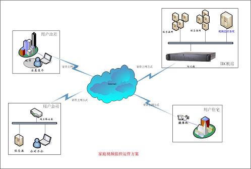 如上图,用户在公司上班或者出差在外地,都可登陆指定网站(IDC机房里的视频监控系统)去查看家里的监控情况。