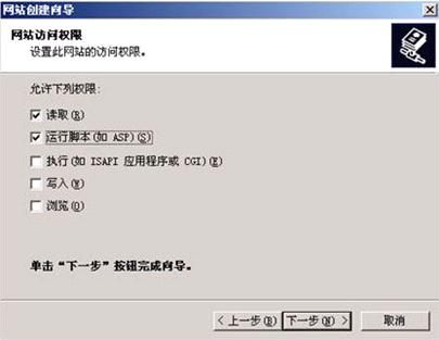 6、在这里把 < 运行脚本(如ASP)> 也选中,然后点击 < 下一步 >。