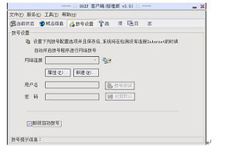 断线自动拨号功能主要是指88IP客户端在检测到系统没有连接internet时,会自动开启客户配置好的网络连接程序进行INTERNET连接,目前支持电话线拨号、ISDN、ADSL、Cable Modem 、小区宽带等多种网络连接方式。