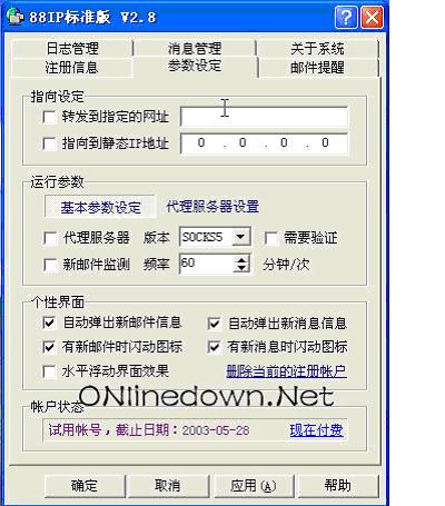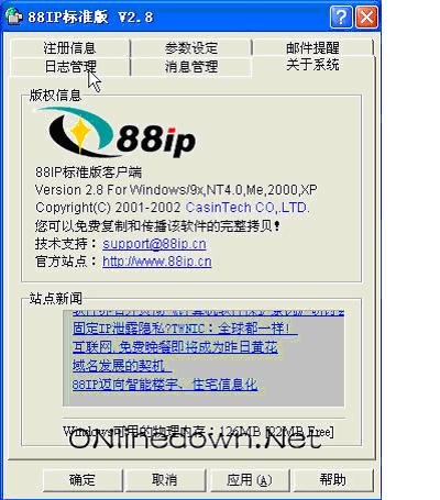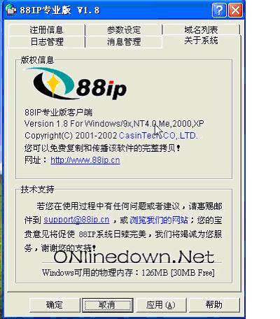 出处:onlinedown 责任编辑:borly 相信你的很多朋友都有自己的Web吧?是不是也想自己弄一个?不再为服务器、固定IP的昂贵和维护的繁琐而烦恼?是否看着虚拟主机的各种限制而止住脚步?现在,你多了一个选择,那就是深圳佳信信息技术有限公司推出的88IP动态域名解析技术!利用88IP动态域名解析,你可以建立Web站点、Ftp站点、Mail服务器,以及远程控制、视频会议、网络游戏、办公自动化、电子商务等应用系统,不管你使用什么方式上网,只要有公网ip,利用88IP提供的域名以及解析服务,就能够架设自己的服务器,构建自己的网上家园不再是梦想!对于企业而言,88IP动态域名解析技术降低投资成本和方便系统维护,真是一举两得!