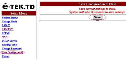 然后进入“Save Configuration”里点“Save”保存设置。
