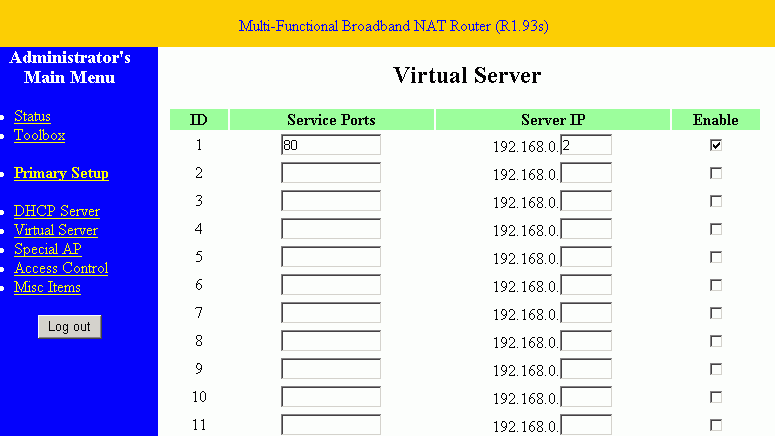 Multi-Functional Broadband NAT Router (R1.93s)端口映射