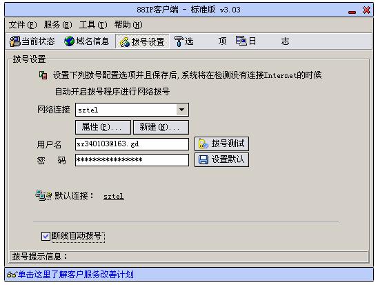 目前,88IP客户端能实现各种拨号网络的自动网络连接,包括ISDN、电话拨号、ADSL和其他PPPOE形式。