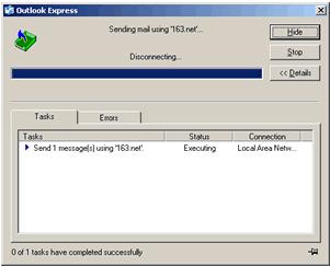 注意:从发送到接收这个时间取决于你使用的发件信箱的服务商,国内的某些免费邮件服务的质量不好,请用户注意
