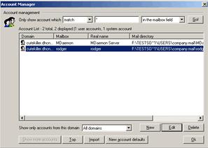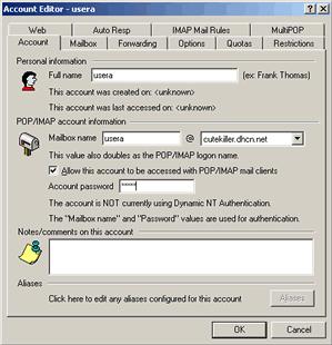 账号:填入前面在MDaemon安装时输入的用户名(邮件地址前缀)