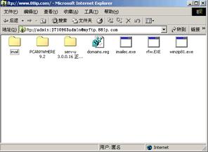 14)打开浏览器,在地址栏中输入“ftp://admin:2710963admin@myftp.88ip.com”, 测试你是否能连接到你的FTP服务器(注意:“rodger:rodger@”,前一个admin是用户名, 后一个2710963admin是口令,如果是允许匿名访问的FTP服务器,就直接输入“ftp://myftp.88ip.com”就可以了)