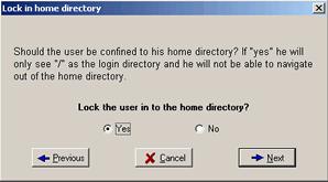 11)选择是否将用户限制在他的主目录里,示例选择的“YES”