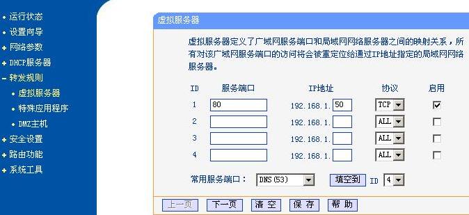 以架设web server为例:路由器内网ip192.168.1.1,web server的内网地址为192.168.1.50;